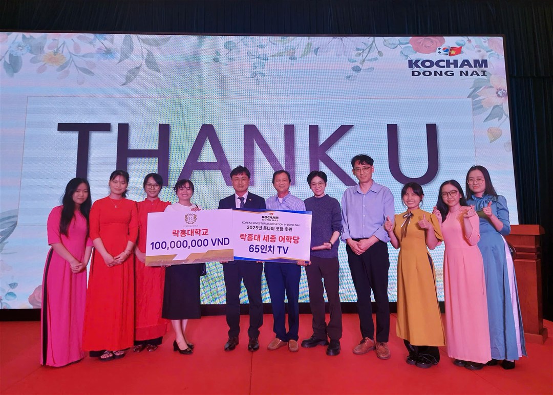 Tại chương trình này ThS Nguyễn Thị Như Thường - Phó Trưởng khoa Đông phương học Trường Đại học Lạc Hồng cùng đại diện ngành Hàn Quốc học đã cùng đến tham dự và nhận số tiền tài trợ cho quỹ học bổng trị giá 100 triệu VNĐ từ Hiệp hội doanh nghiệp Hàn Quốc tại Đồng Nai.