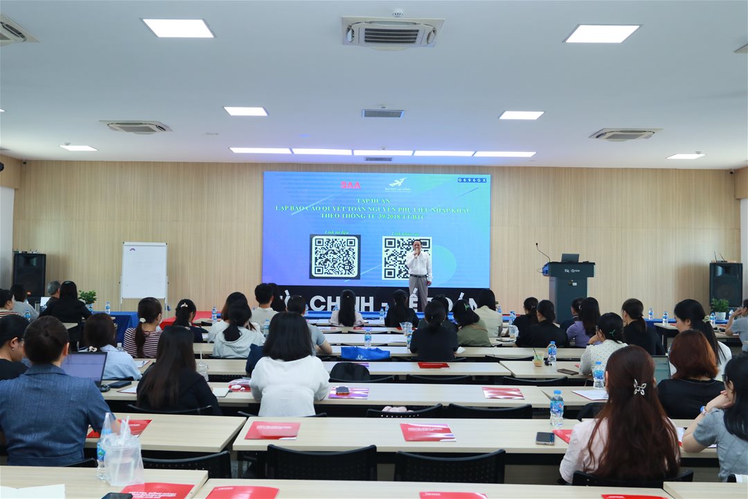 Trong phần trình bày, diễn giả đã phân tích các quy định mới liên quan đến quyết toán nguyên phụ liệu nhập khẩu, đồng thời hướng dẫn sinh viên vận dụng văn bản pháp luật vào thực tế doanh nghiệp, từ đó hiểu rõ hơn các bước xử lý chứng từ, kiểm tra số liệu, lập báo cáo quyết toán và ứng dụng công nghệ trong quản lý kế toán xuất nhập khẩu.