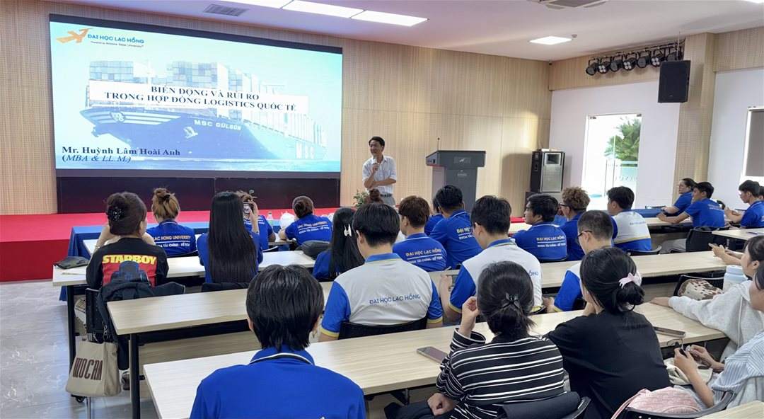 In order to strengthen academic activities associated with industry practice and provide students with opportunities to engage with real-world issues in the logistics sector, on March 10, 2026, the Faculty of Finance and Accounting, Lac Hong University, successfully organized a specialized seminar entitled “Volatility and Risks in International Logistics Contracts: Force Majeure or Hardship?” at Hall A301.