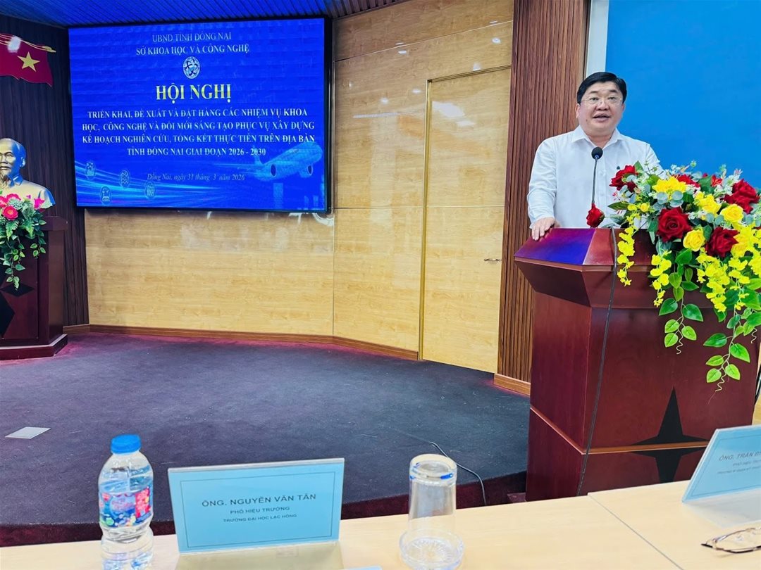 Representing LHU at the conference were Dr. Nguyen Van Tan, Vice Rector of LHU, along with leaders and faculty members from the Center of Scientific Research and Applications, the Faculty of Information Technology, and the Faculty of Pharmacy. The event also gathered scientists, representatives from research institutes, universities, and research centers both within and outside Dong Nai province, as well as leaders from provincial departments, agencies, and local authorities.
