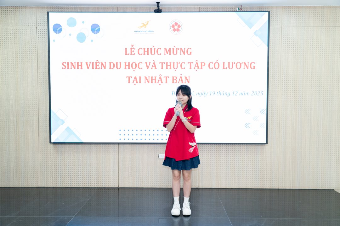 Sáng ngày 19/12/2025, tại phòng B203 – Cơ sở 1, Trường Đại học Lạc Hồng, Nhà trường đã long trọng tổ chức Lễ chúc mừng sinh viên đi du học và thực tập có lương tại Nhật Bản. Buổi lễ là hoạt động ý nghĩa nhằm ghi nhận, biểu dương và động viên những nỗ lực đáng tự hào của sinh viên Ngành Nhật Bản học trong quá trình học tập, rèn luyện và từng bước hội nhập vào môi trường giáo dục, làm việc quốc tế.