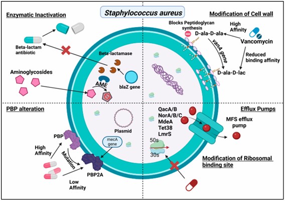 • Figure 1. Antibiotic resistance mechanisms of S. aureus